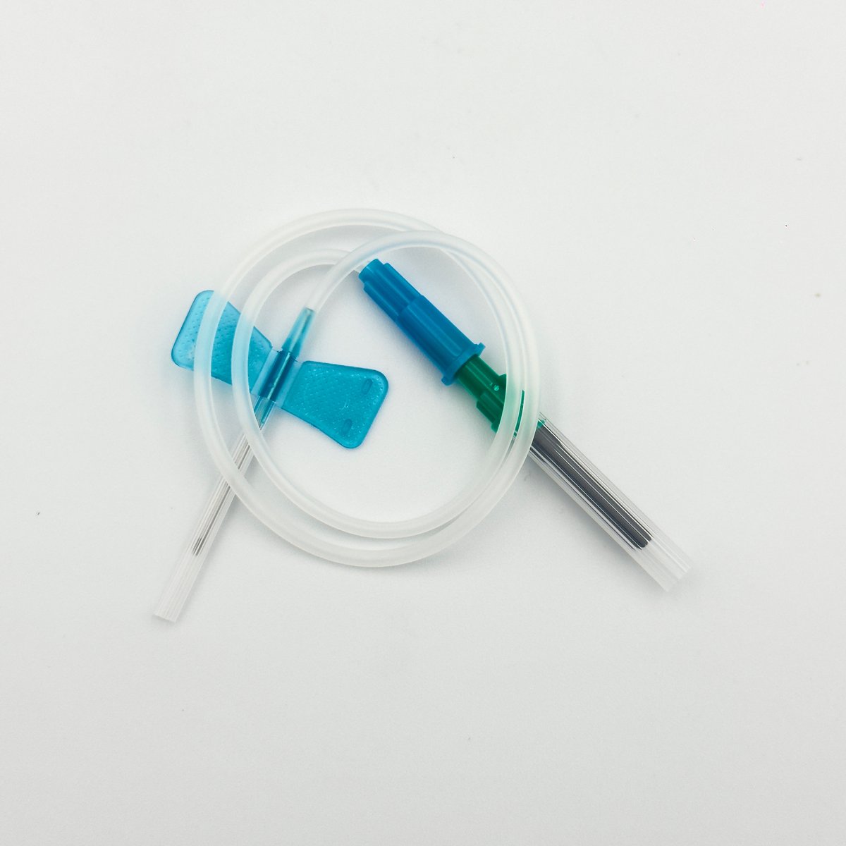 : BrandA blood collection set with luer adapter (also known as a multisample needle with luer adapter or butterfly needle set) is a sterile, single-use medical device used for phlebotomy, especially for patients with delicate or small veins. The 23G x 3/4" needle is color-coded light blue and is packaged in a box of 100 units. Key Features and Specifications The device typically includes a winged needle, flexible tubing, and a luer adapter for attaching to an evacuated tube holder (holder may be sold separately). Needle Gauge: 23 Gauge (G), which has a small diameter suitable for patients with fragile or thin veins, such as infants, young children, or some adults. The color code for 23G is typically light blue. Needle Length: 3/4 inch (0.75"). Tubing Length: Typically 12 inches (some variations might have 7 inches), providing flexibility and ease of manipulation during the procedure.Adapter: Features a luer adapter (or multi-sample luer adapter) which allows for the collection of multiple blood samples with a single venipuncture by facilitating secure connection to various vacuum blood collection tubes. Safety Mechanism: Many modern sets include a safety feature (e.g., a sliding shield or push-button retraction) that can be activated immediately after use to cover the exposed needle and help prevent accidental needlestick injuries. Material: Made from high-quality, siliconized stainless steel cannula and is typically latex-free and DEHP-free, ensuring safe use for patients and practitioners with allergies. Sterility and Packaging: The product is sterile (sterilized by ethylene oxide or gamma irradiation), non-toxic, and non-pyrogenic. Each set is typically packaged individually in a sterile pack (e.g., foil-and-paper blister pack), and the box contains 100 pieces.