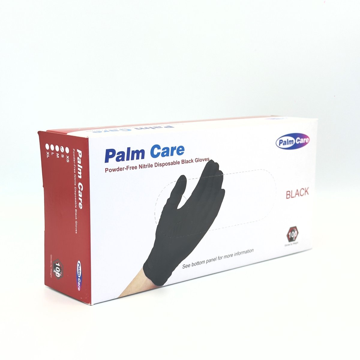 : Palm CarePalm Care Nitrile Black Powder Free Examination SMALL Gloves are high-quality, disposable, and ambidextrous gloves designed for protection across a range of applications, including medical, laboratory, and food handling environments. Each box contains 100 gloves. Key Features Material: Made from durable and flexible nitrile material, providing good resistance to punctures, tears, oils, solvents, and a range of chemicals. Latex-Free & Powder-Free: The latex-free design makes them suitable for individuals with latex allergies or sensitivities, while the powder-free construction minimizes the risk of residue contamination. Enhanced Grip: They feature textured fingertips to ensure a secure, non-slip grip and enhanced precision, even when handling wet or oily items. Comfort & Fit: Designed for comfort during extended wear, the gloves have a flexible fit, are ambidextrous, and include a beaded cuff to enhance donning and prevent roll-backVersatile Use: Ideal for a wide range of tasks, including medical examinations, laboratory work, food preparation, cleaning, hair coloring, tattooing, and pet care. Color: The black color offers a professional look and helps hide stains and dirt. Packaging: box containing 100 pieces.