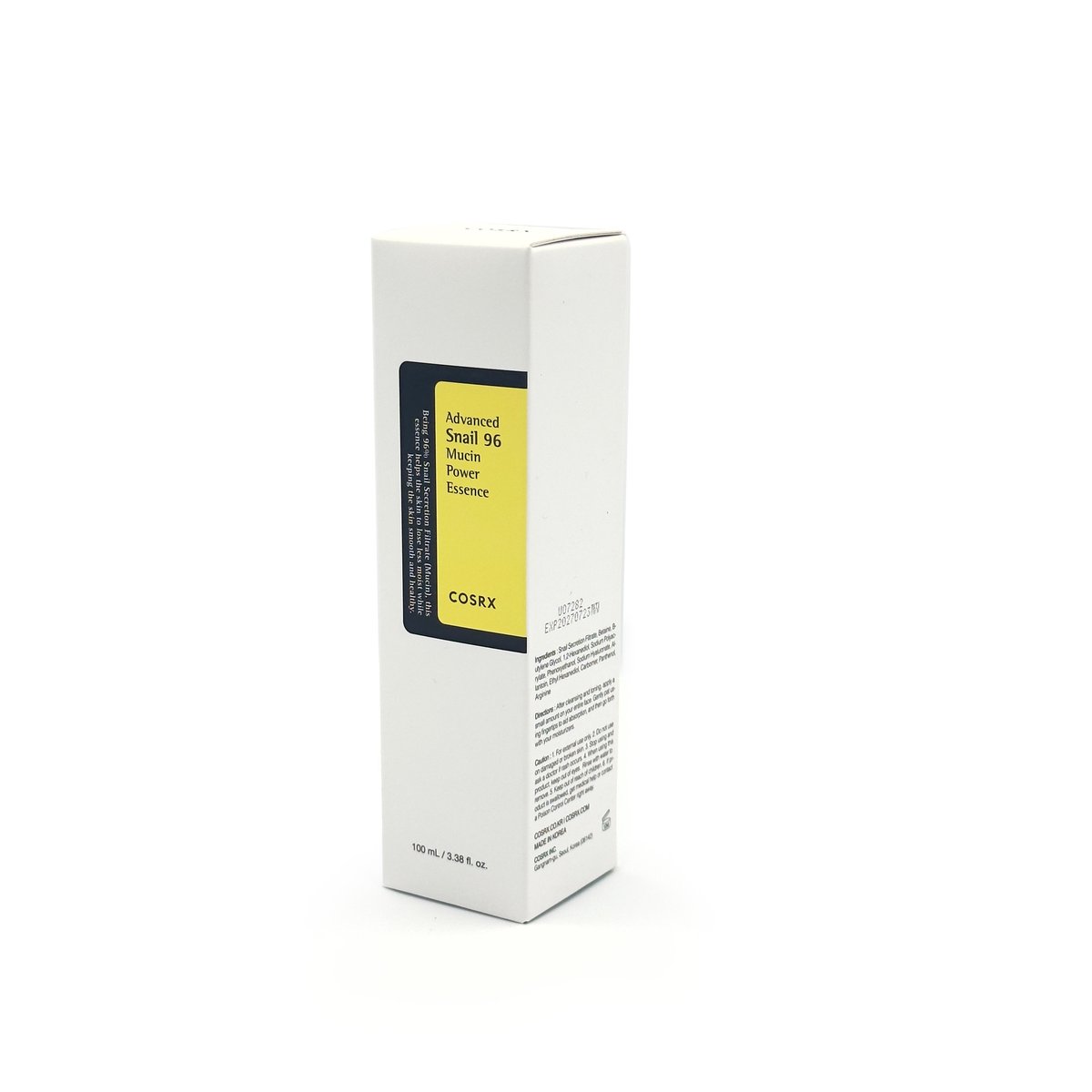 : COSRX - MADE IN KOREACOSRX was founded in 2013 as a small Korean skincare brand with a handful of products and big goals. By 2014, COSRX's products were making significant online ripples among the international skincare community with customers reporting fantastic tangible results. Unlike the traditional Korean brands, Cosrx is ingredient focused and uses minimal yet effective ingredients without unnecessary fillers in their products. Cosrx is generally termed as a clean beauty brand as it is believed to contain only safe ingredients.Cosrx Advanced Snail 96 Mucin Power Essence is the light- weight essence which absorbs into skin fast to give skin natural glow from the inside. This essence is created from nutritious, low-stimulation filtered snail mucin to keep your skin moisturized and illuminated all day. The snail secretion filtrate present in it deliver rich nourishment through quick absorption. Sodium hyaluronate present in it provides plumping and soothing care & infuses hydration. The essence targets dull, rough, dry & dehydrated skin. It helps to get rid off the dark spots & scars. The formula is free from artificial dyes, fragrances, mineral & essential oils. Specifications Key Ingredients: The primary ingredient is 96.3% Snail Secretion Filtrate, which nourishes, helps repair damaged skin, and improves elasticity. It also contains sodium hyaluronate for plumping hydration, and allantoin, arginine, and panthenol to soothe and calm the skin. Texture and Scent: It has a lightweight, gel-like, "stretchy" texture that absorbs quickly into the skin without leaving a heavy or sticky residue for most users. It is fragrance-free.Benefits: Intense Hydration: Protects the skin from moisture loss, providing long-lasting hydration for a plump, dewy look. Skin Repair: Helps to soothe damaged and irritated skin and can aid in the healing process of post-acne breakouts. Improved Complexion: Works to fade dark spots and scars, improve uneven skin tone and texture, and enhance overall skin radiance. Anti-aging Support: Helps to minimize the appearance of fine lines and wrinkles by boosting skin elasticityUsage: The essence is suitable for all skin types, including sensitive, dry, and acne-prone skin. It is intended for daily use (both morning and night) after cleansing and toning, and before applying a moisturizer.We source our products directly from trusted brands and authorized distributors. They are carefully stored and shipped from our certified climate-controlled warehouses. To guarantee authenticity, we do not permit third-party resellers on our website. Disclaimer : This product is not intended to diagnose, treat, cure, or prevent any disease. Always consult with a healthcare professional or dermatologist for specific skin concerns or medical conditions. Use Only: The product is intended for topical application on the skin and should not be ingested. Damaged Skin: Do not use the essence on damaged or broken skin. Irritation: Stop using the product and consult a doctor if a rash, stinging, or burning occurs.