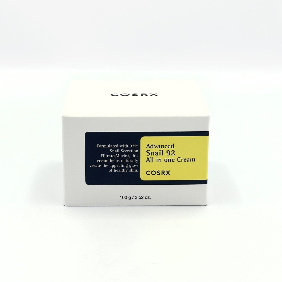 : COSRX - MADE IN KOREACOSRX was founded in 2013 as a small Korean skincare brand with a handful of products and big goals. By 2014, COSRX's products were making significant online ripples among the international skincare community with customers reporting fantastic tangible results. Unlike the traditional Korean brands, Cosrx is ingredient focused and uses minimal yet effective ingredients without unnecessary fillers in their products. Cosrx is generally termed as a clean beauty brand as it is believed to contain only safe ingredients.Cosrx Advanced Snail 92 All In One Cream 100ml is a lightweight, gel-type moisturizer formulated with 92% snail secretion filtrate to deeply hydrate, repair, and soothe skin without greasiness. It enhances elasticity, reduces redness, and fades acne scars for a glowing, "glass skin" finish, making it suitable for all skin types, especially sensitive or dry skin. Key Ingredient: 92% Snail Secretion Filtrate for intense nourishment, skin regeneration, and barrier repair. Texture: Light-weight, non-greasy, gel-type cream that absorbs quickly. Formula Highlights: Free from artificial colorants and fragrances. Primary Benefits: Provides deep moisture, improves elasticity, and calms irritated skin. How to Use: After cleansing and toning, apply a moderate amount onto the face and neck, tapping gently for better absorption. Best Time: Suitable for both morning and evening,, as a final step to lock in moisture. Skin Types: Ideal for all skin types, particularly those with dry, damaged, or sensitive skin. Tip: Can be used on damp skin to maximize hydration. Benefits Hydration & Repair: Replenishes moisture and repairs the skin barrier. Anti-Aging: Helps diminish the appearance of fine lines and wrinkles. Soothing: Calms irritation and reduces redness after breakouts. Even Tone: Helps lighten acne scars and dark spots. Disclaimer No Professional Advice: The information is not intended as a substitute for professional medical advice, diagnosis, or treatment. Always seek the advice of your physician, pharmacist, or another qualified healthcare provider with any questions you may have regarding a medical condition or product use, especially if you have sensitive or acne-prone skin. .Country of Origin South Korea Form Cream Skin Type Dry.We source our products directly from trusted brands and authorized distributors. They are carefully stored and shipped from our certified climate-controlled warehouses. To guarantee authenticity, we do not permit third-party resellers on our website .