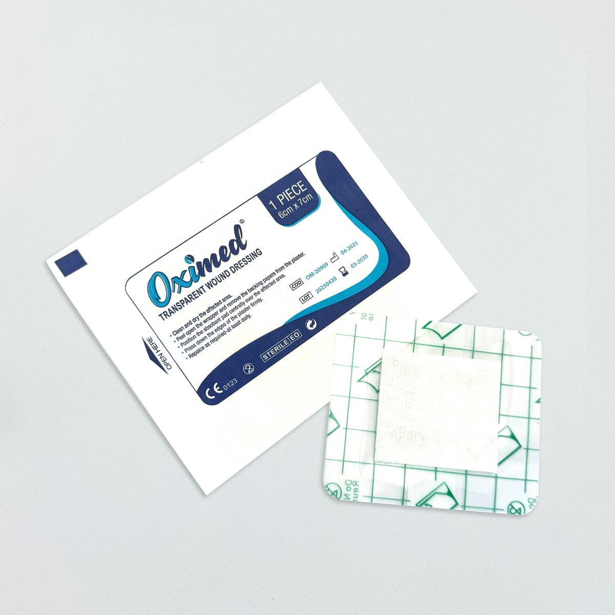: OximedA sterile, self-adhesive, and waterproof wound cover that provides a protective barrier against external contaminants like water, dirt, and germs. Its transparency allows for easy monitoring of the wound without removing the dressing, and the built-in absorbent pad manages light to moderate exudate. Used to cover and protect surgical incisions, providing a sterile barrier while allowing easy visual inspection of the healing site.