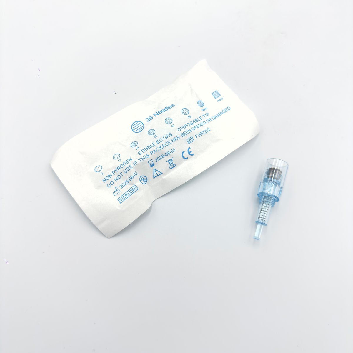 : Dr.PenThe Dr.Pen X5 36 pin cartridges are disposable microneedling tips made of medical-grade stainless steel designed to address various skin concerns, primarily by stimulating collagen production and enhancing product absorption. They are specifically compatible with the Dr.Pen X5 microneedling device. Material: The needles are crafted from high-quality, medical-grade stainless steel. Safety and Hygiene: Each cartridge is for a single use only to prevent cross-contamination and is individually sealed in sterile packaging (sterilized by EO gas). Design: The cartridges feature a secure screw port design for easy and stable attachment to the Dr.Pen X5 device. Function: They work by creating tiny, vertical micro-channels on the skin's surface, which triggers the body's natural healing response and increases the production of collagen and elastinThe 36-pin configuration is particularly suited for treating larger surface areas and sensitive skin with minimal irritation. Skin Rejuvenation & Anti-Aging: Ideal for treating fine lines and wrinkles. Scar Reduction: Effective for treating relatively shallower acne scars, surgical scars, and stretch marks. Tone & Texture Improvement: Addresses concerns such as hyperpigmentation, melasma, rosacea, and uneven skin tone. Enhanced Product Absorption: The micro-channels created allow for significantly improved absorption and efficacy of topical serums and treatments like hyaluronic acid or vitamin C serums. Other Applications: Can be used for skin brightening, improving hydration, reducing under-eye bags and crow's feet, and minimizing enlarged pores. PACKING-20/BOX .Important: These cartridges are designed exclusively for use with the Dr.Pen X5 model and should not be used on open wounds or irritated skin.