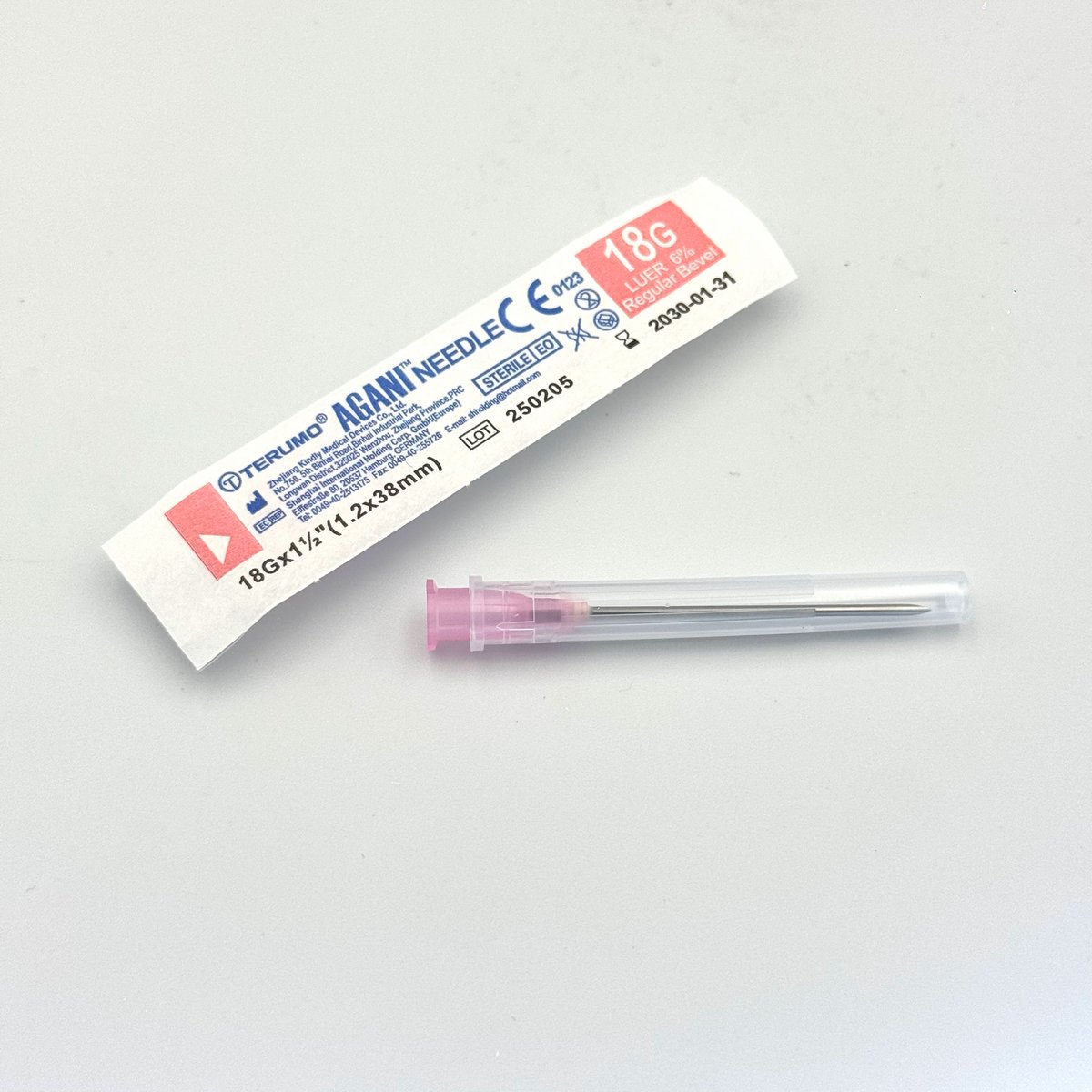 : TerumoThe Terumo 18G x 1 1/2" (1.2 x 38mm) Agani™ Needle is a high-quality, sterile, single-use, pink-hubbed hypodermic needle designed for precision and patient comfort. It features a large diameter (18-gauge) and a long, 1.5-inch needle,, making it ideal for high-flow, viscous, or deep-tissue applications. In dermatology clinics, this needle is primarily used as a, "drawing-up" needle for thick products, in subcision procedures, or for surgical interventions rather than routine injections. Gauge: 18G (1.2 mm), which is a large diameter, suitable for rapid, high-viscosity fluid transfer. Length: 1 1/2 inches providing significant depth for procedures. Color Coding: Pink hub (ISO 6009 compliant) for immediate identification. Design: Ultra-thin wall construction for improved flow, with an ultra-sharp, triple-bevel Lancet tip for reduced tissue trauma. Lubrication: Coated with silicone for smooth, low-resistance, and gentle skin penetration. Compatibility: Fits Luer Lock or Luer Slip syringes. Material: High-quality stainless steel, sterile, and latex-free.